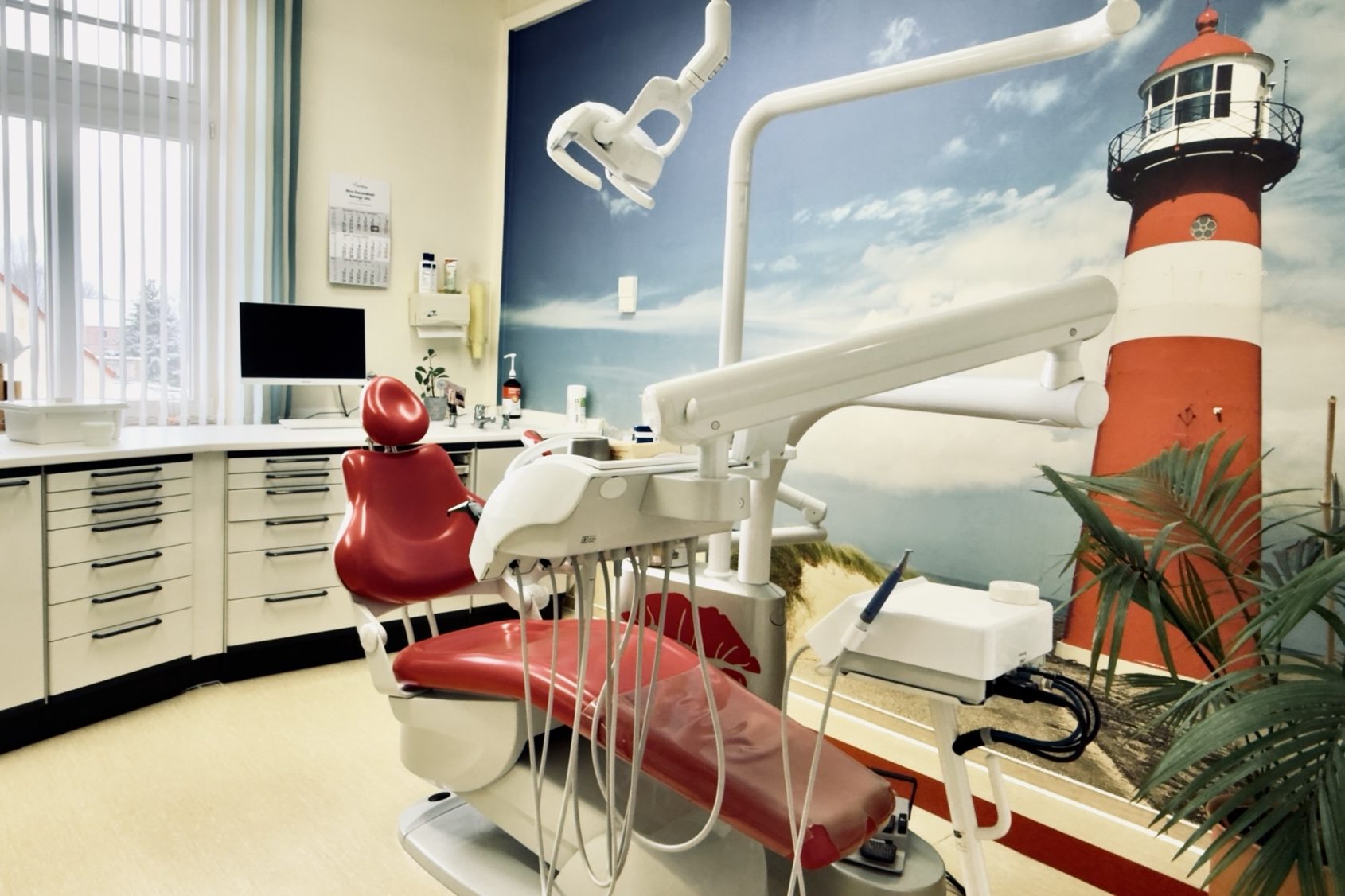 Im Wartebereich lädt eine freundliche Atmosphäre zum Verweilen ein. Besonders für Familien ist eine Spielecke eingerichtet, in der Kinder sich beschäftigen können, während Eltern oder Begleitpersonen entspannen. Für höchste Hygienestandards sorgt ein eigener Sterilisationsraum (Steri), in dem Instrumente fachgerecht aufbereitet werden. Dies gewährleistet Sicherheit und Professionalität in allen Bereichen der Praxis. Ein speziell ausgestatteter Röntgenraum ermöglicht präzise Diagnosen durch modernste bildgebende Verfahren. Dies spart Zeit und sorgt für eine exakte Planung der Behandlung.